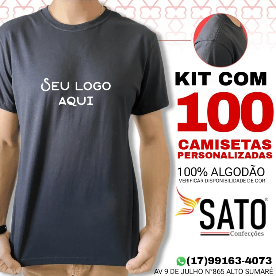 Kit com 100 Camisetas Personalizadas