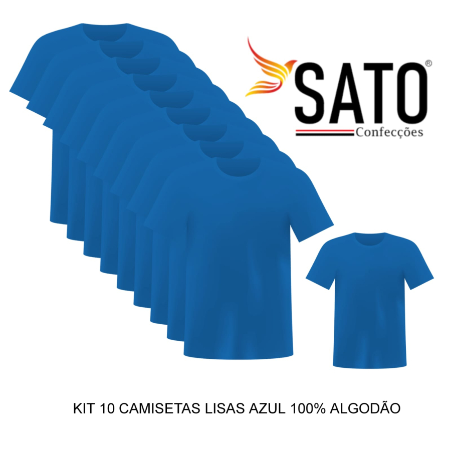 Kit 10 Camisas Lisas Azul